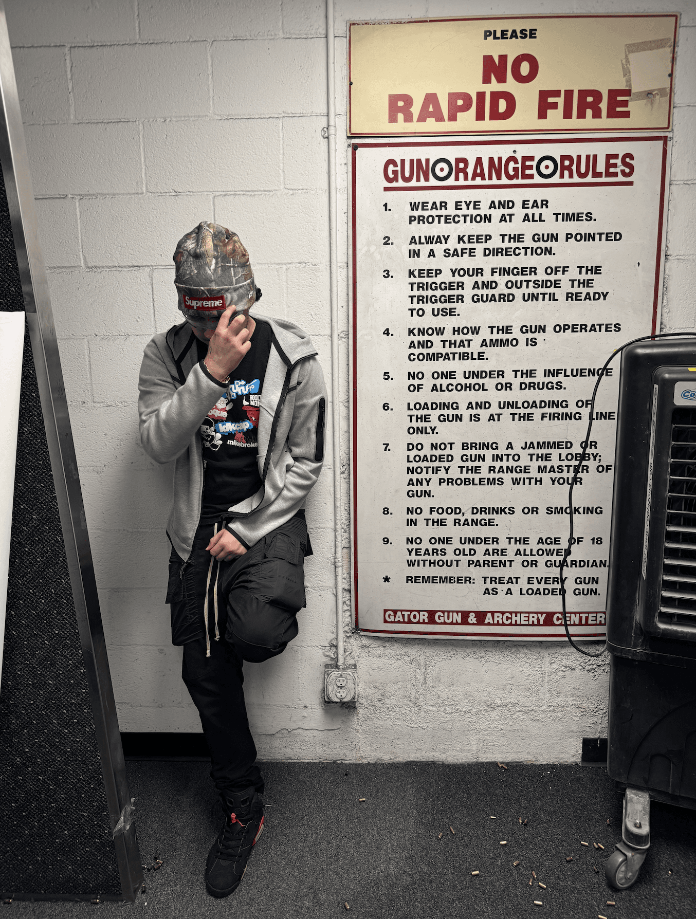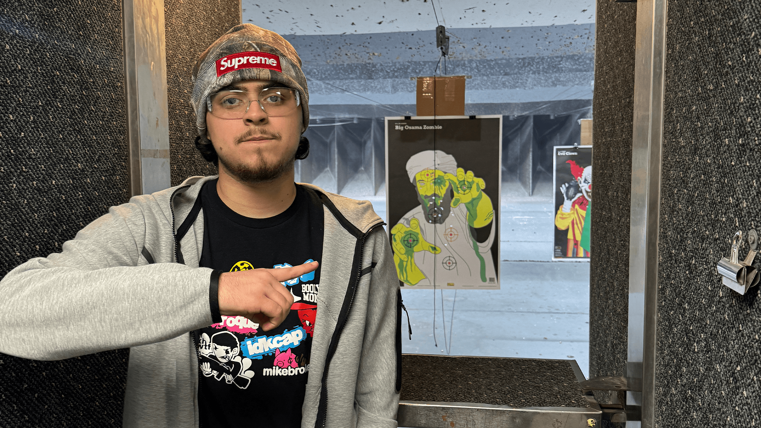 After a few more rounds of shooting at a zombified caricature of Vladimir Putin and Kim Jong Un (A paper target they had available at the range titled “Dictators”), I asked Perubaby about his experience with live concerts this past year. More specifically, the shows hosted by Instagram pages @tubmanunderground and @leanopp in New York and Los Angeles. He noted that fans go “absolutely Brock Lesnar suplex city massacre” (?) for the aforementioned I Asked Booly If I Could Use His Adlibs. The same goes for All Praise Be To Yahweh, and more.