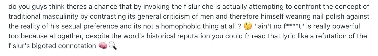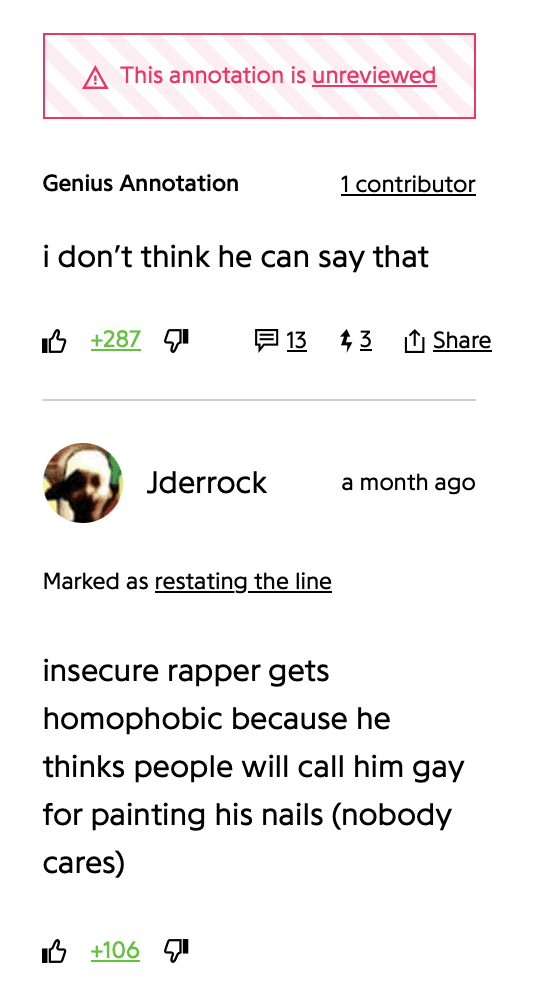 Someone even highlighted the lyric on Genius with an annotation that reads, “i don’t think he can say that.” The comment sits at 287 likes and has multiple replies. The Che subreddit was full of debate where, ironically, fans who argued would call each other retards.
